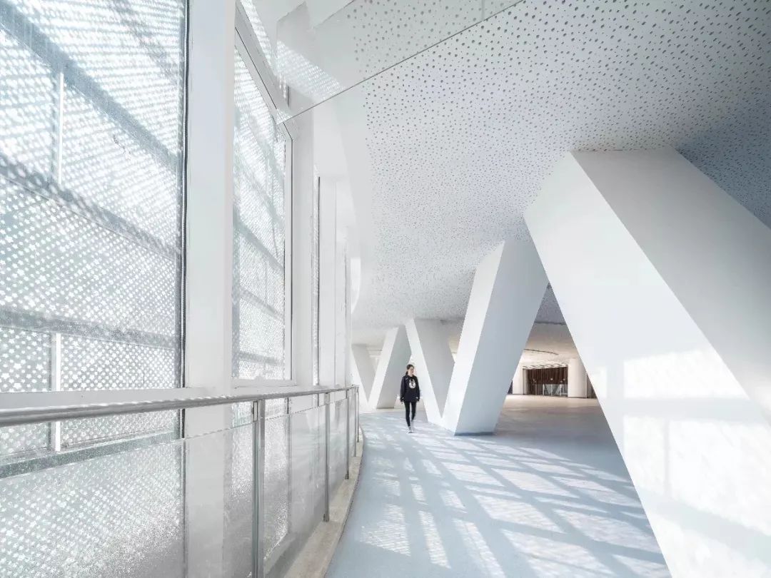 各指端標(biāo)識(shí)性立面回應(yīng)周邊城市環(huán)境多樣性。劇場(chǎng)、辦公、陶藝、書(shū)法、舞蹈、聲樂(lè)等教室安置在各不相同的指端,各指端設(shè)計(jì)具有識(shí)別性立面指引不同人群有序進(jìn)入青少年宮。