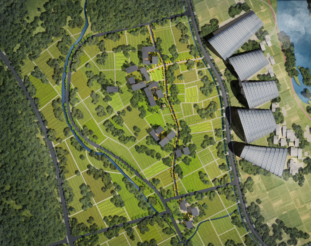 庭院透視(建筑、道路、稻田交織)RENDERINGS