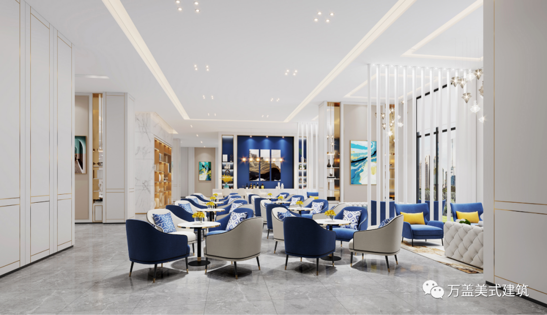延續建筑設計理念,根據使用功能以及定位,我們以現代、舒適、人性化為出發點,從現代美學中提取相關元素,通過解構與演變等設計手法,用簡潔的設計語言表達空間。