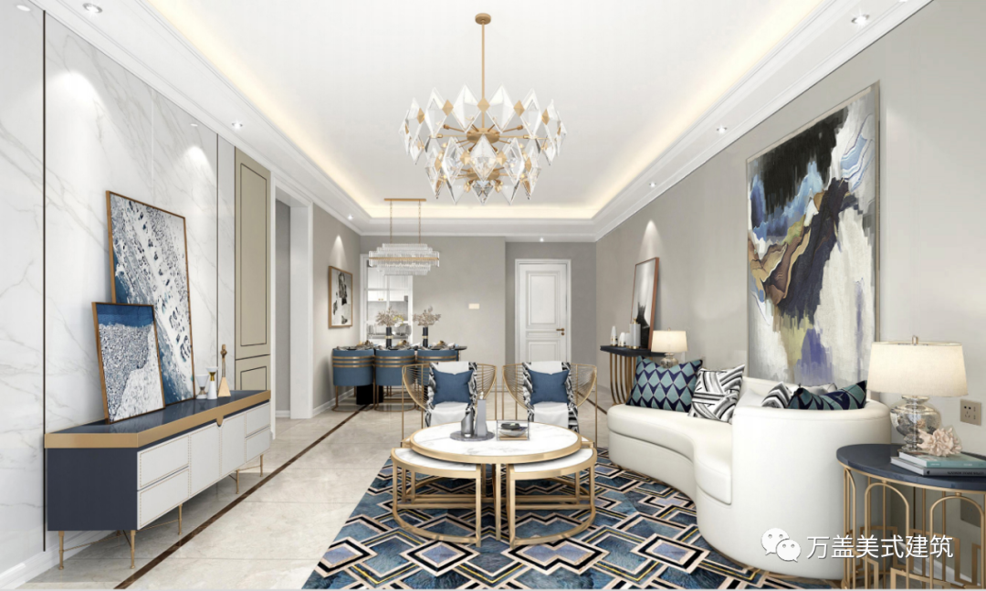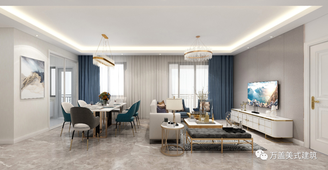 設計在簡淡的米色調中,用楓葉色與金色進行局部點綴,以虛化實,將落楓的柔軟與日暮的暖意納入空間情調中,室內透著日常的味道,溫暖美好,靜寧安然。在部品的選擇上注重質感,匹配物質與精神層面的審美格調,呈現雅致時尚的空間氣質。