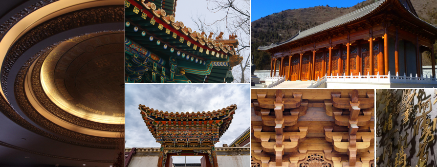 設計中提取中華建筑文化最典型符號,并融合藏式彩繪,以抽象的方式演繹淳樸自然的視覺感受,在斗拱之下,人們歡聚一堂,借由抖動以臺梁的方式相連相扣,向上托起,連接為平臺,向城市與自然魂寶致敬。