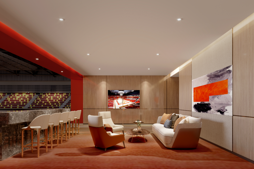 體育館VIP包間,延續了主空間簡潔明快的設計手法,局部點綴場館主題色,呼應場館主題,整體打造一個功能完整、體感輕松舒適的VIP包間??臻g軟裝掛畫等內容以后期運營需求為主。