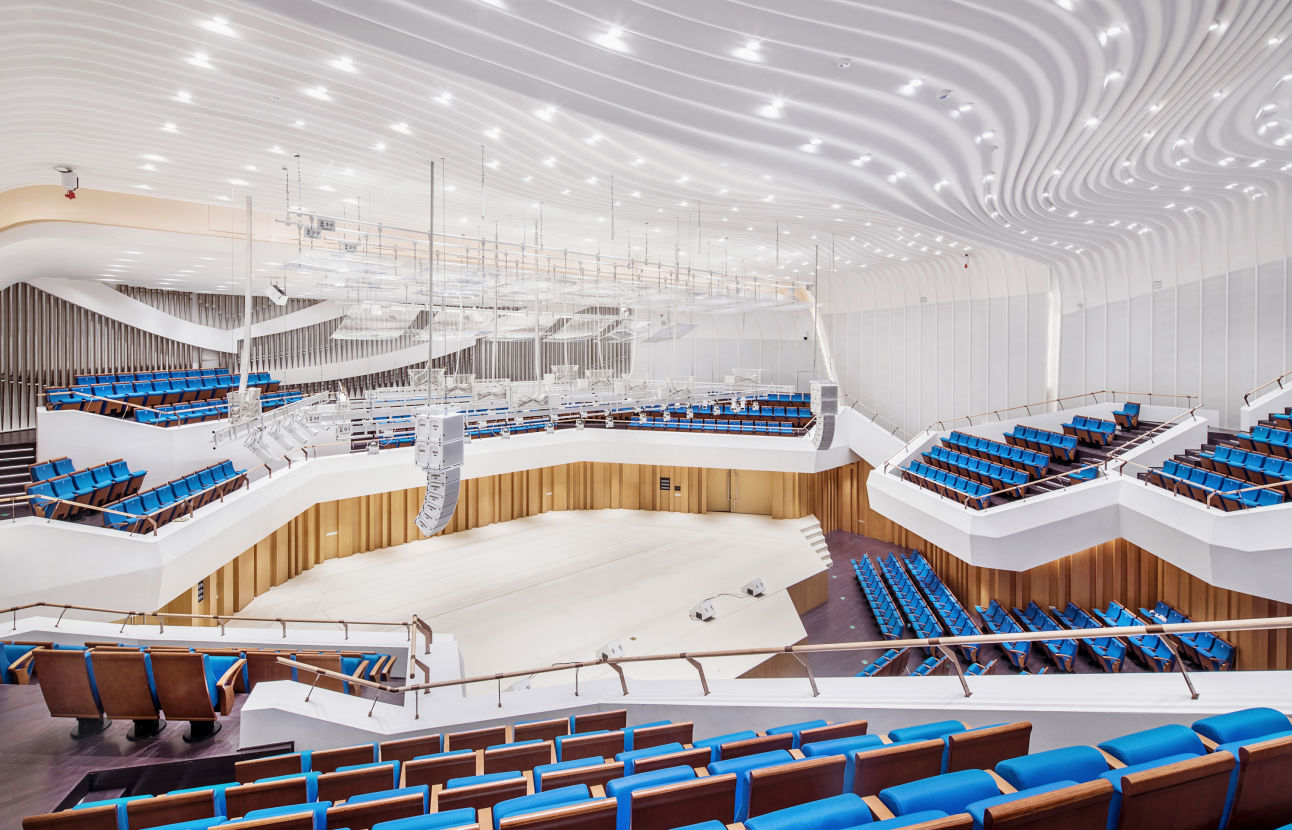 天府音樂廳能容納950名觀眾的純自然聲音樂廳,主體位于地下一層至三層,南北兩 側各設置一個下沉庭院以便于人員疏散,多功能小劇場主體位于云端塔西側地下 一層及二層,能容納350名觀眾。目前ICON云端音樂廳聲場效果已接近國際A級標 準。通過進一步調試,未來甚至能達到國際A+級標準,能滿足全球頂級交響樂團 的演出需求。